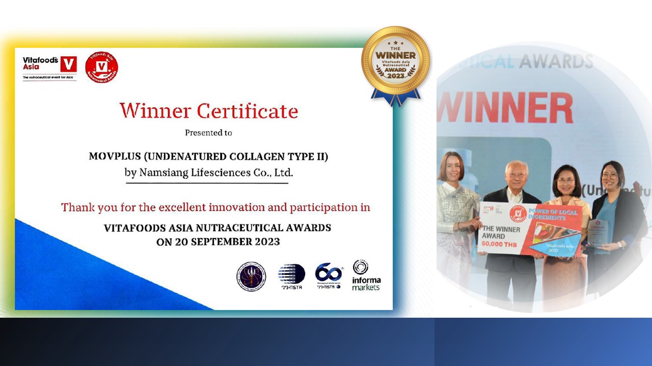 Movplus® is the winner of the Vitafoods Asia Nutraceutical Award 2023, which was judged on September 19th, 2023 and presented to audiences on the show floor. Vitafoods Asia, in collaboration with the Center of Expertise in Herbal Product Innovation and the Thailand Institute of Scientific and Technological Research, joined forces to search for the best ideas for innovative nutraceutical products based on the concept of local wisdom.